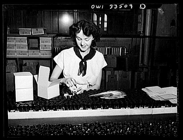 Image Credit: Arthur S. Siegel “Parke, Davis and Company, manufacturing chemists, Detroit, Michigan. Packaging pills in the finishing department” (1943) from The Library of Congress