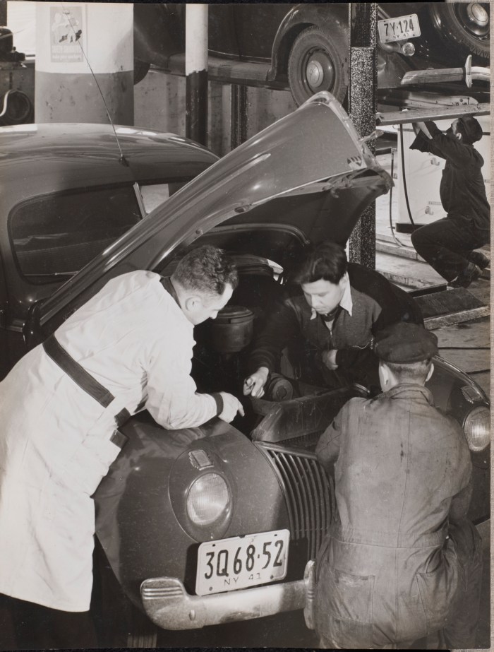 Image Credit: Arnold Eagle “Three men work under the hood of a car” (about 1940–1942) Digital image courtesy of the Getty’s Open Content Program.