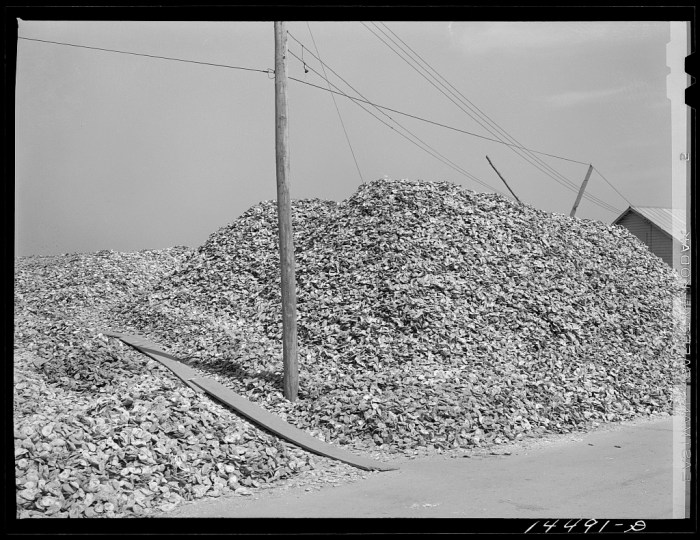 Image Credit: Reginald Hotchkiss “Shuck pile. Rock Point, Maryland. These shells are returned to river to start new beds” (1941) The Library of Congress