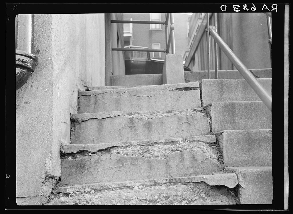 Image Credit: Carl Mydans “View showing disintegration of concrete stairs at the Model Housing Corporation, Cincinnati, Ohio” (1935) Public domain image courtesy of the Library of Congress